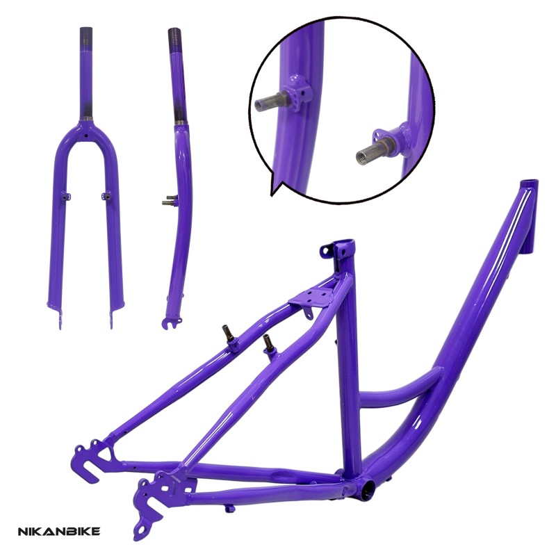 تنه دخترانه دوچرخه سایز 26 همراه با دوشاخ فولادی سایز 22 و فریم 16 اینچ. موجود در رنگبندی متنوع و جذاب: بنفش، صورتی، قرمز، سفید، زرد و مشکی.