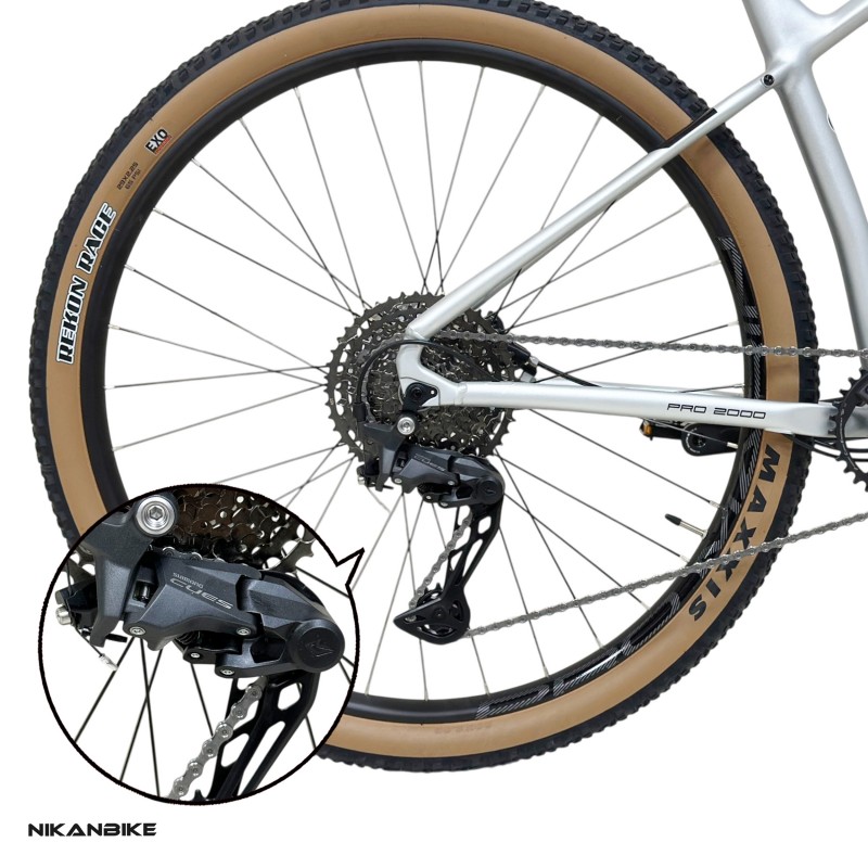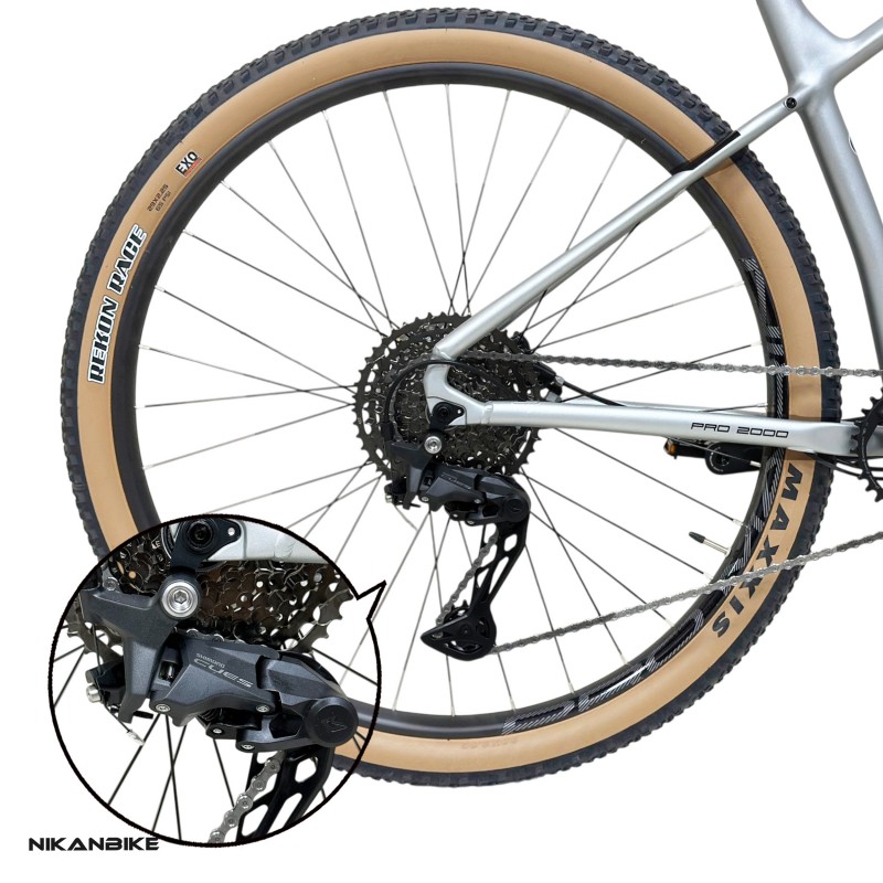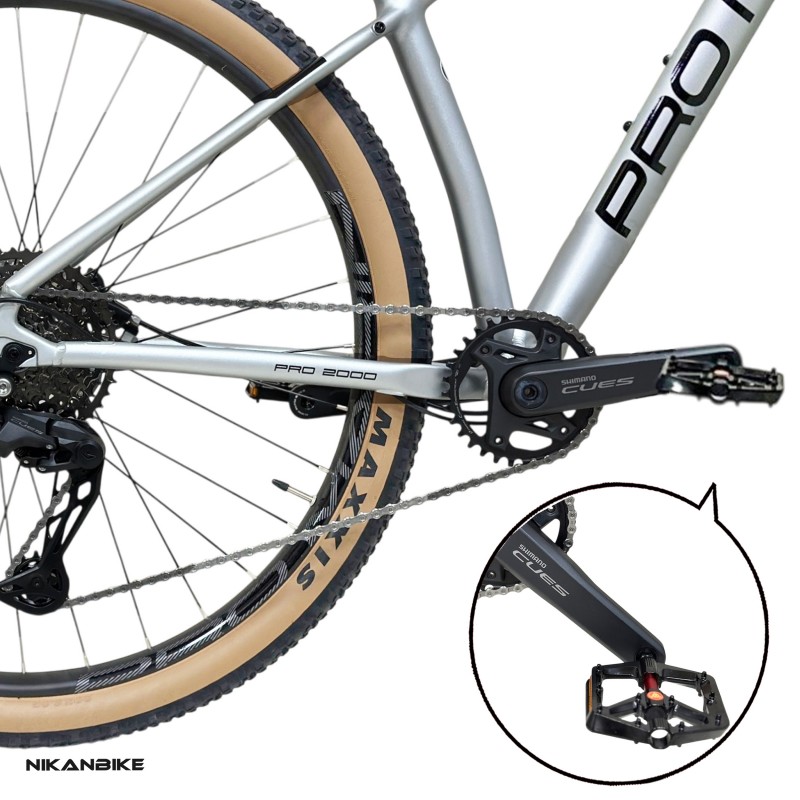 دوچرخه کوهستان PRO MARIN PRO 2000 سایز 29، دوچرخهای حرفهای و آماده برای چالش! مجهز به سیستم دنده تک طبق SHIMANO CUES 1x11، دوشاخ بادی UDING با تنظیم ریباند و ترمزهای قدرتمند شیمانو هیدرولیک MT200. این دوچرخه با توپی تنه هالوتک و لاستیکهای مکسس، بهترین گزینه برای سواریهای آفرود و طولانی است.