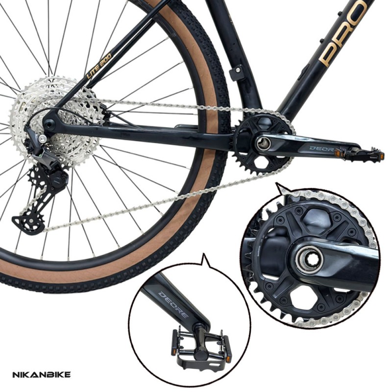 نقطه قوت اصلی PRO LITE 200، سیستم دنده تکطبق SHIMANO DEORE (1x12) است. این سیستم حرفهای با حذف طبقعوضکن و طبق اضافه جلو، وزن دوچرخه را کاهش داده و تعویض دنده را سریعتر و بدون نیاز به فکر کردن در مسیرهای دشوار میکند.