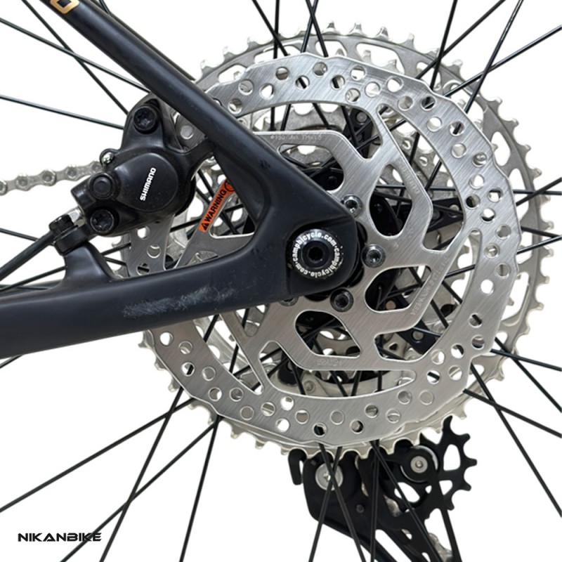 سیستم ترمز دیسکی هیدرولیکی SHIMANO MT200 همراه با روتورهای ۱۸۰ میلیمتری در جلو و ۱۶۰ میلیمتری در عقب، قدرت توقف فوری، دقیق و قابل اطمینانی را در شرایط مرطوب و خشک فراهم میکند. کالیپر و کت ترمز آلومینیومی شیمانو، دوام و عملکرد فوقالعاده این ست ترمز را تکمیل مینمایند.