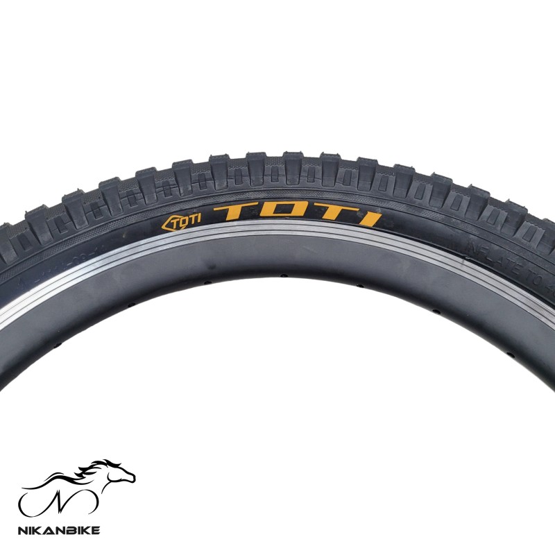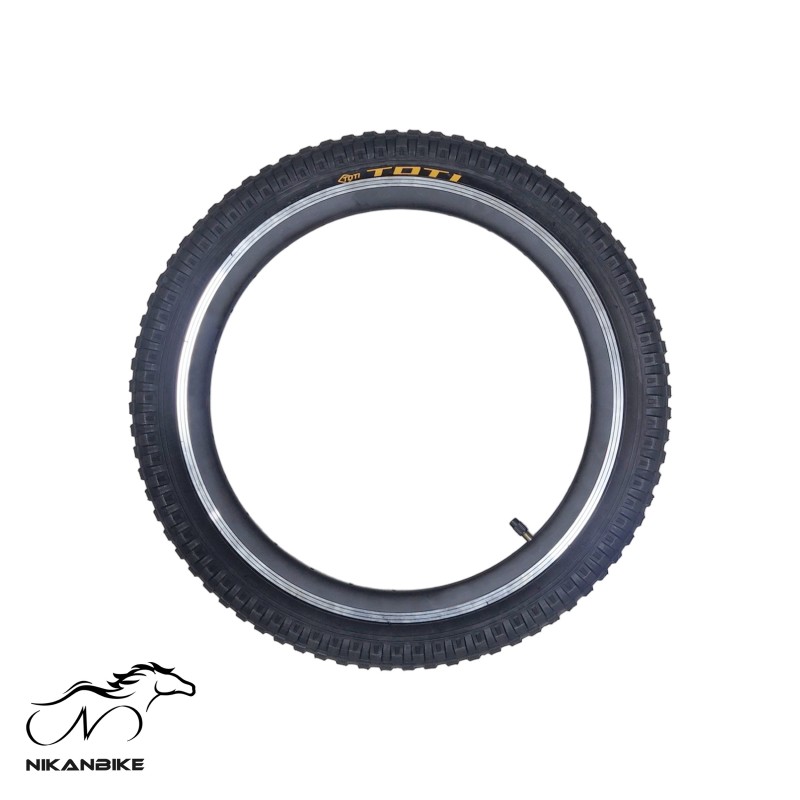 لاستیک دوچرخه توتی مدل YN-1114-09-14 با سایز 20x2.4 اینچ و طرح آج درشت گل، محصولی با کیفیت برای دوچرخههای سایز 20 است که در مسیرهای ناهموار استفاده میشوند.