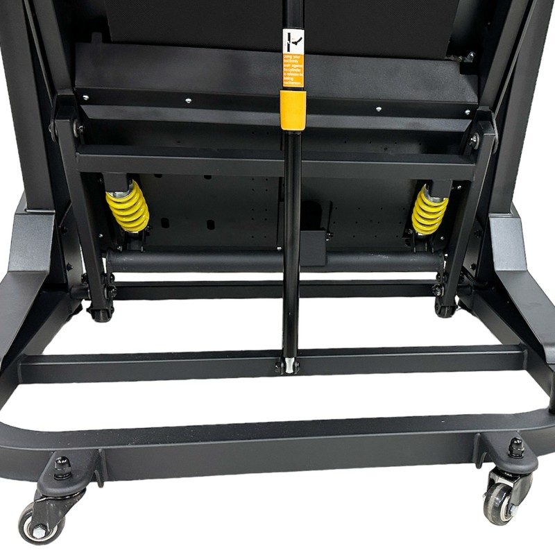 2. تردمیل را از حالت تاشده باز کنید و پایه ها را به درستی باز و قفل کنید تا دستگاه ثابت و پایدار باشد.